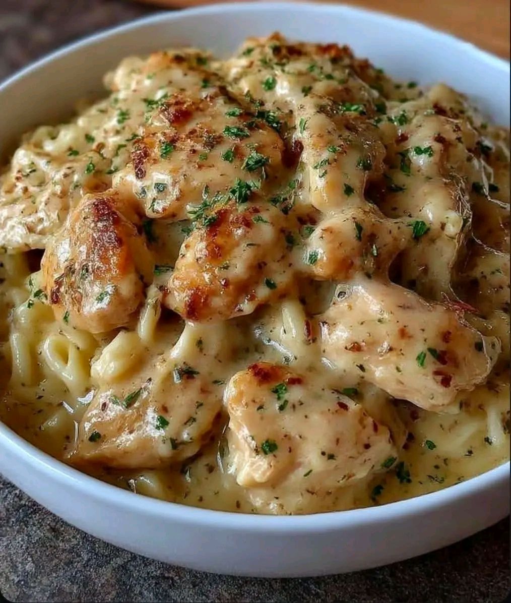 Return the chicken to the pan, nestling it into the noodles. Spoon some buttery sauce over the chicken. Let everything simmer together for 2–3 minutes so the flavors blend beautifully.